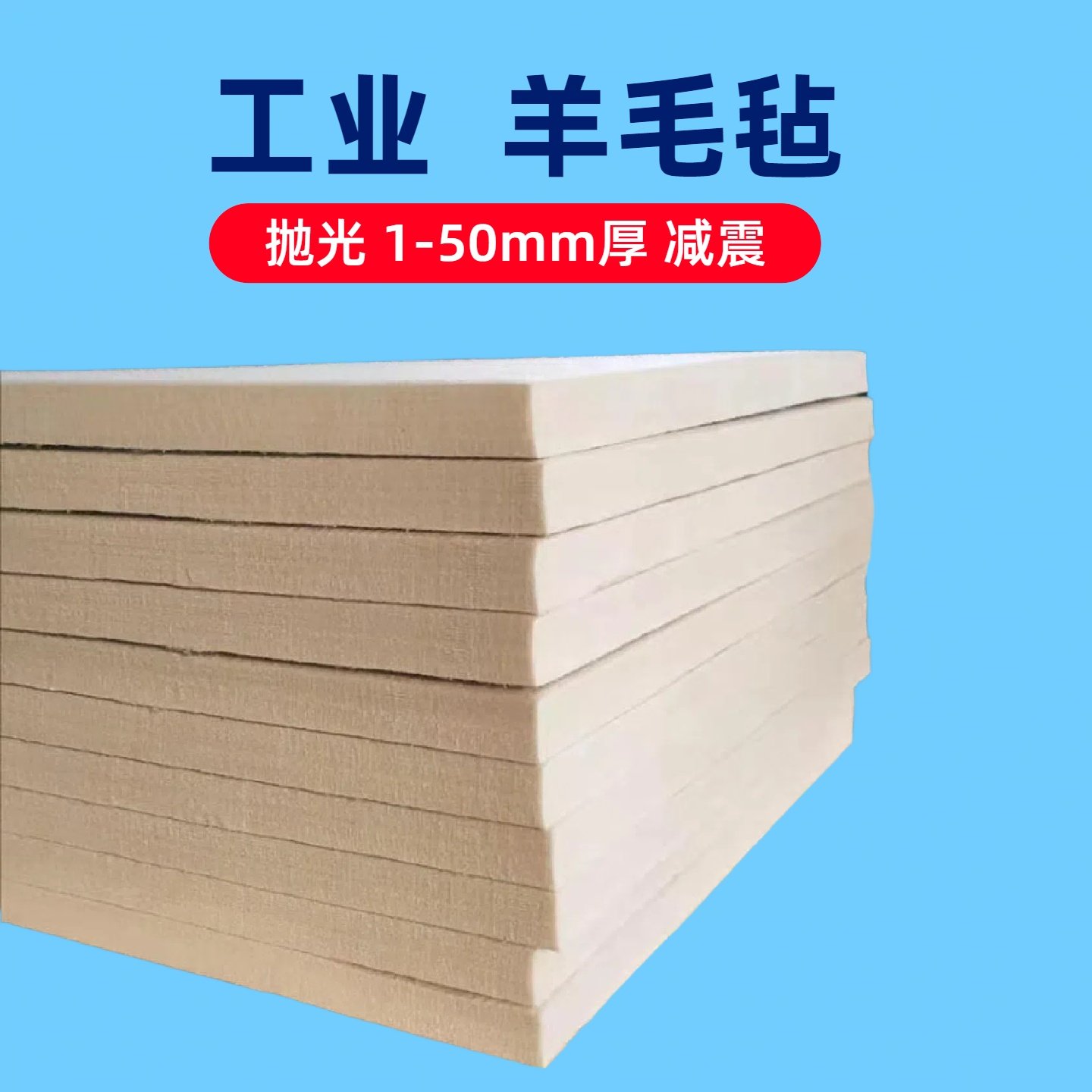 工业羊毛毡吸油高密度耐磨耐高温防震防尘抛光毛毡条块圈1-50mm厚