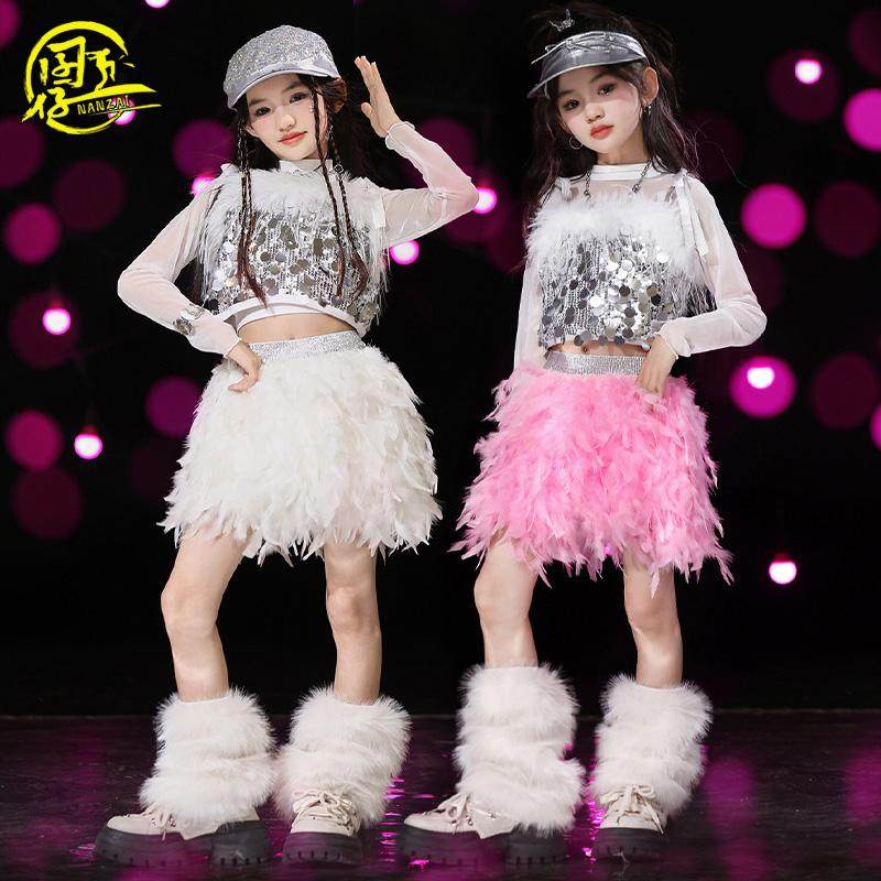儿童啦啦队演出服男女童嘻哈街舞架子鼓潮服现代爵士舞蹈亮片服装