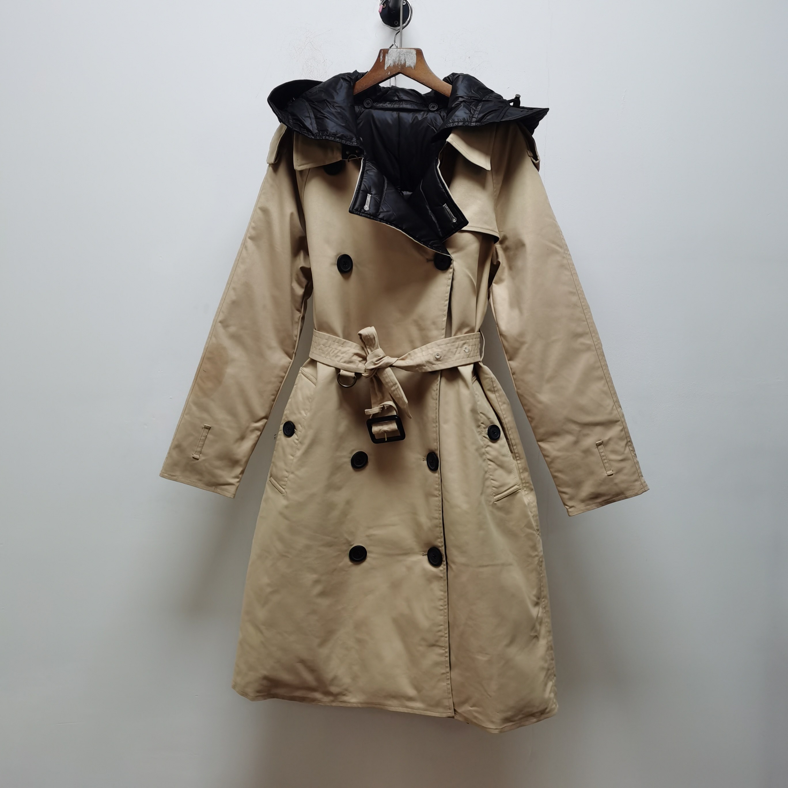 去标欧货经典中长款过膝白鹅绒收腰休闲风衣羽绒服女修身P306瑕疵