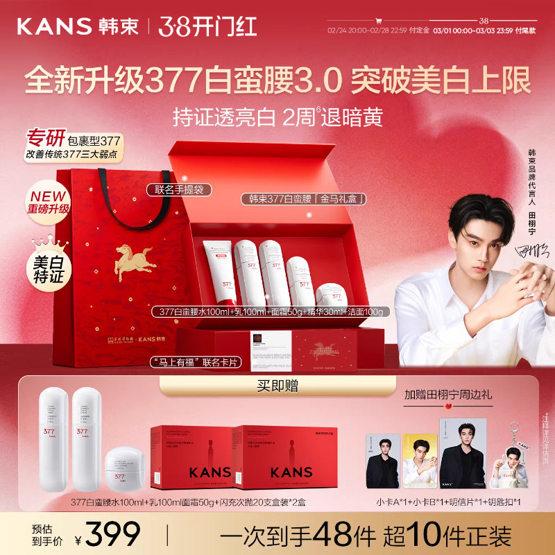 【田栩宁同款】韩束377白蛮腰美白淡斑礼盒护肤品去黄水乳套装