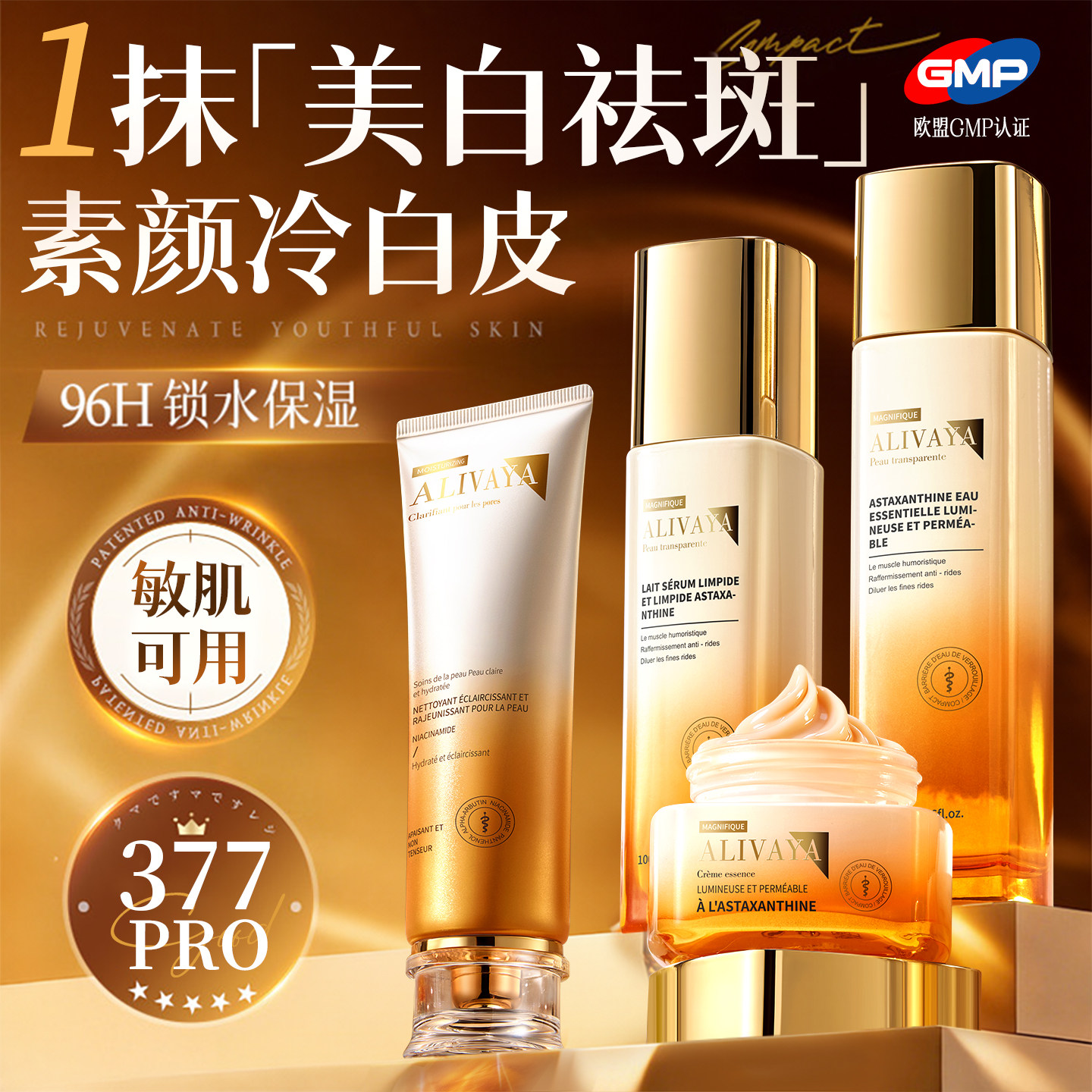 进口377水乳套装祛斑美白提亮去黄补水保湿化妆护肤品官方正品店