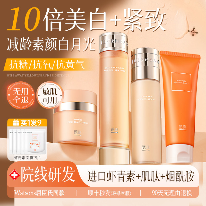 透真3577美白水乳套装祛斑淡痘印去黄提亮护肤品补水保湿精华面霜