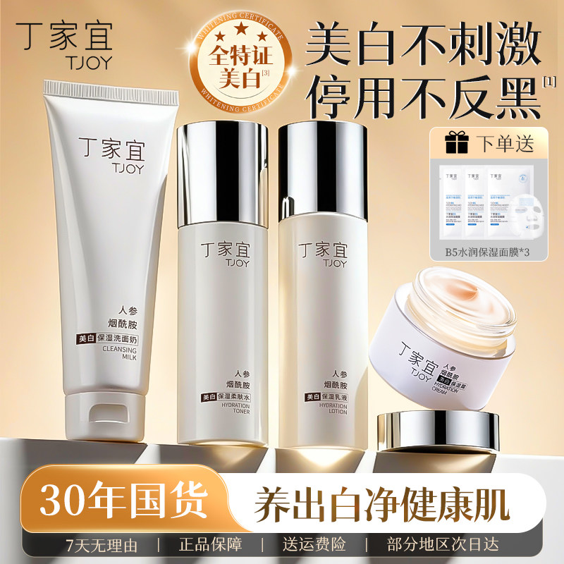 丁家宜美白祛斑面霜套装去黄提亮保湿滋润补水乳液护肤品官方正品