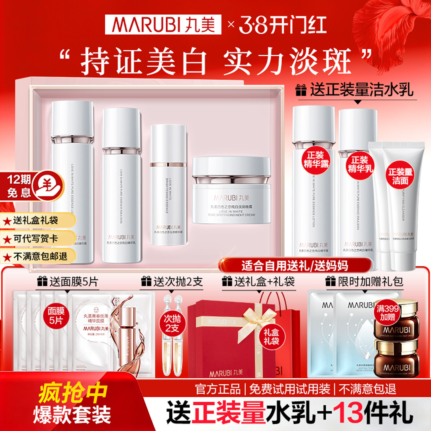 丸美白色之恋水乳套装美白去黄淡斑淡纹护肤品礼盒官方旗舰店正品