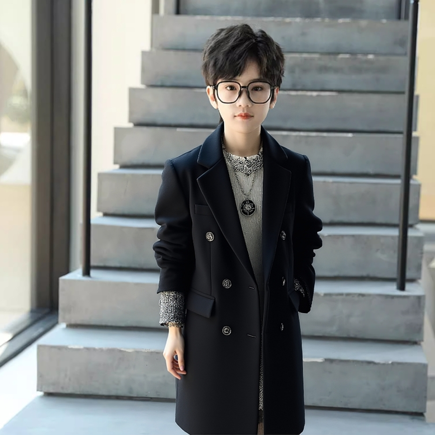 儿童双排扣风衣英伦秋冬中长款西装西服男宝宝呢大衣毛呢外套帅气
