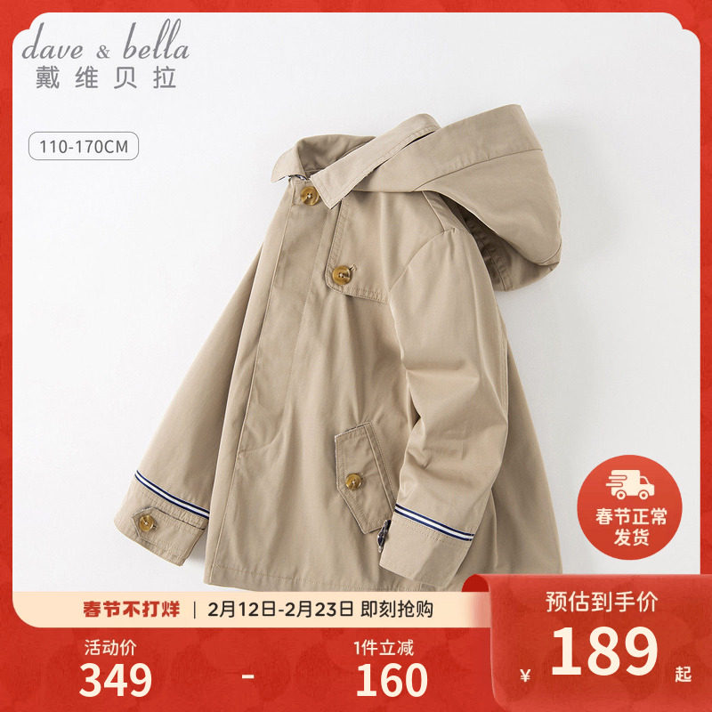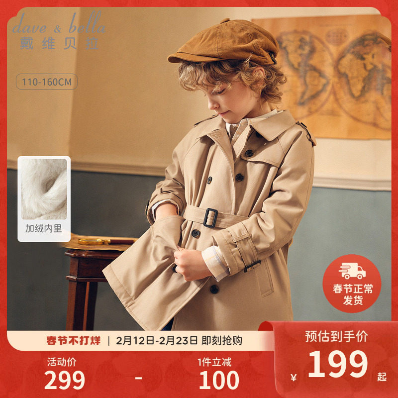 戴维贝拉男童中长款风衣2026冬新款儿童英伦风外套女大童加绒上衣