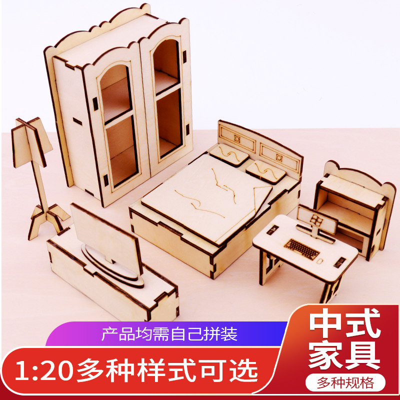 沙盘室内户型仿真中式微缩1:20家居家具diy原木木质拼装材料模型