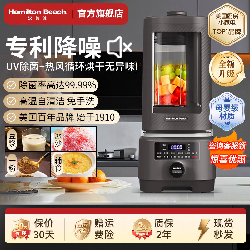 美国汉美驰柔音破壁机家用全自动新款轻低音无渣豆浆机辅食料理机