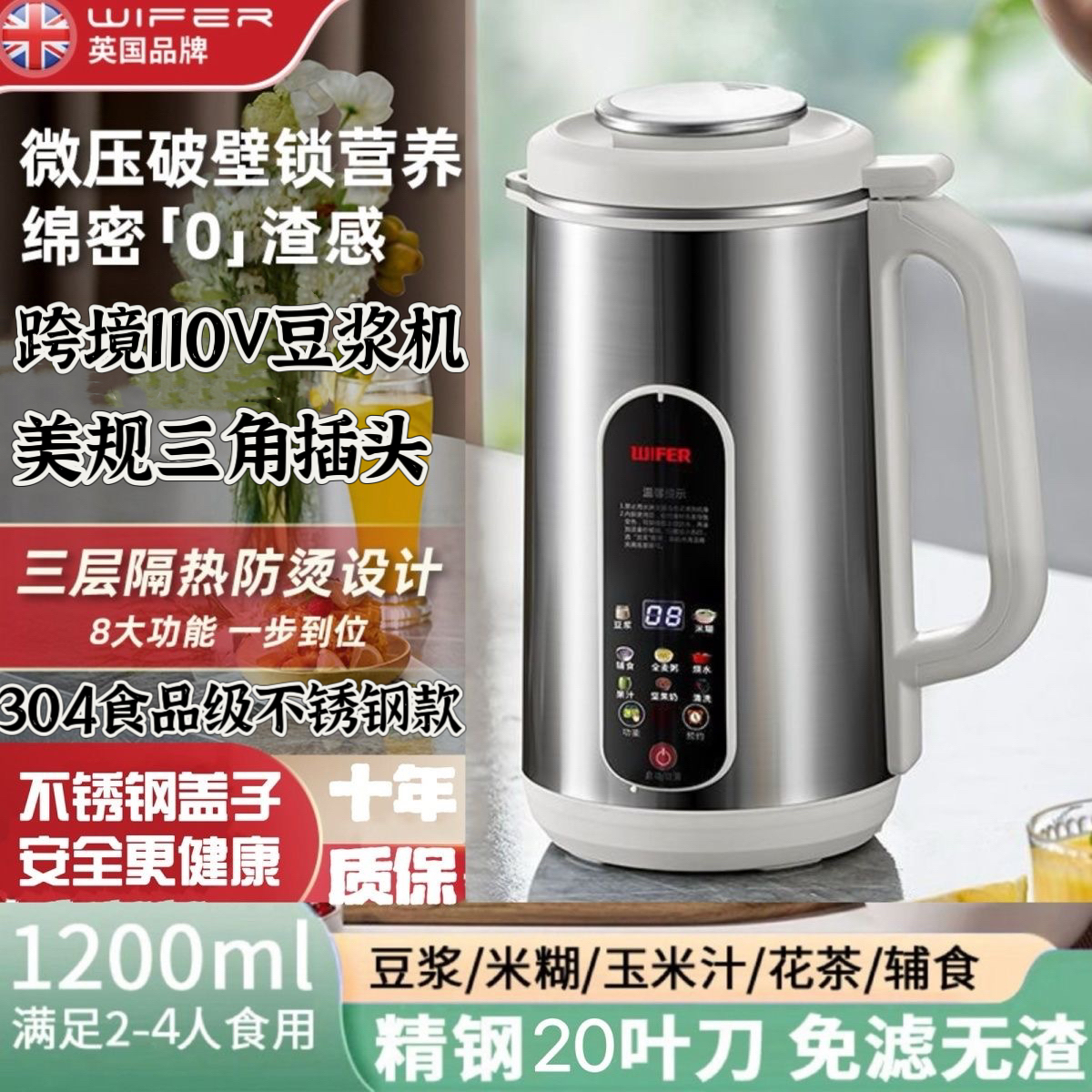 110v伏豆浆机静音家用破壁机不锈钢研磨机出口美国日本台湾小电器