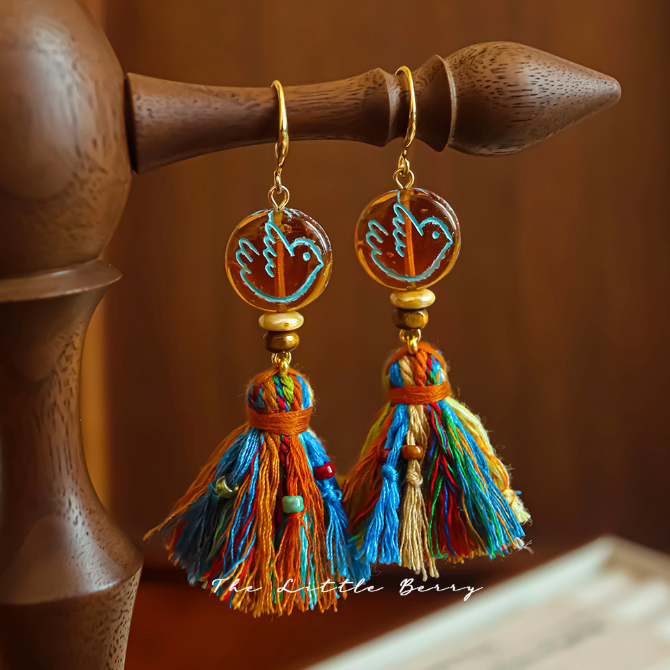 野菓子《拾梦》秋冬长款流苏耳环藏式民族风复古小众设计耳饰耳夹