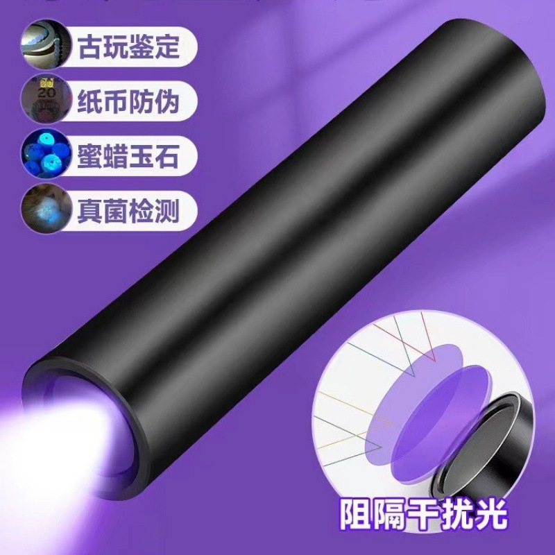 紫光灯鉴定灯专用365nm验钞uv照玉石手电筒强光紫外线笔翡翠鉴别