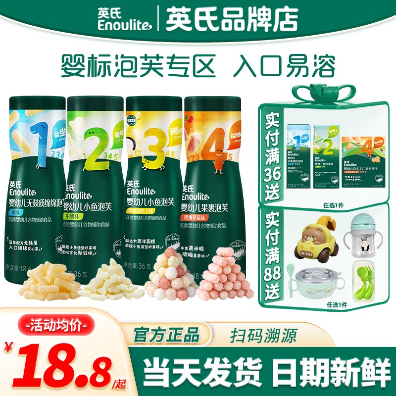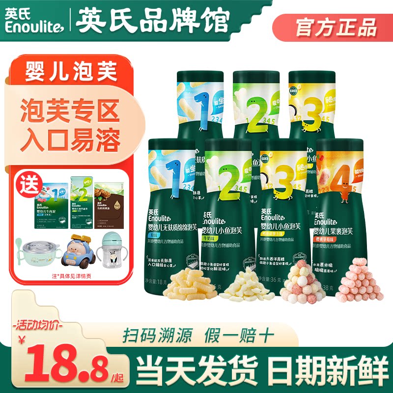 英氏泡芙6个月婴幼儿零食宝宝手指泡芙条英式小鱼泡芙球儿童辅食