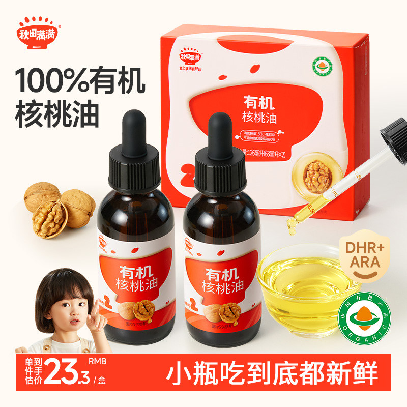 秋田满满有机核桃油亚麻籽牛油果热炒油,送宝宝婴幼儿童辅食用谱