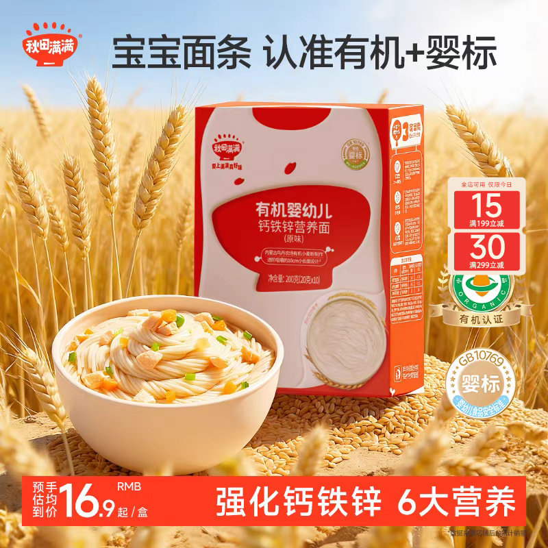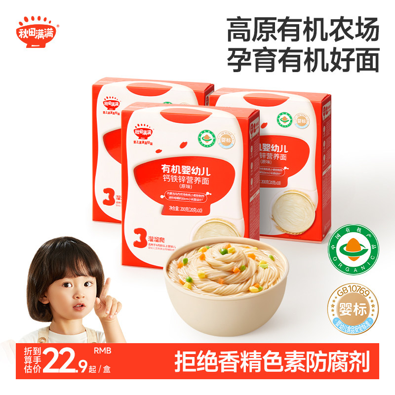 秋田满满宝宝面条碎碎面婴儿无添加盐有机儿童辅食营养面食粒粒面