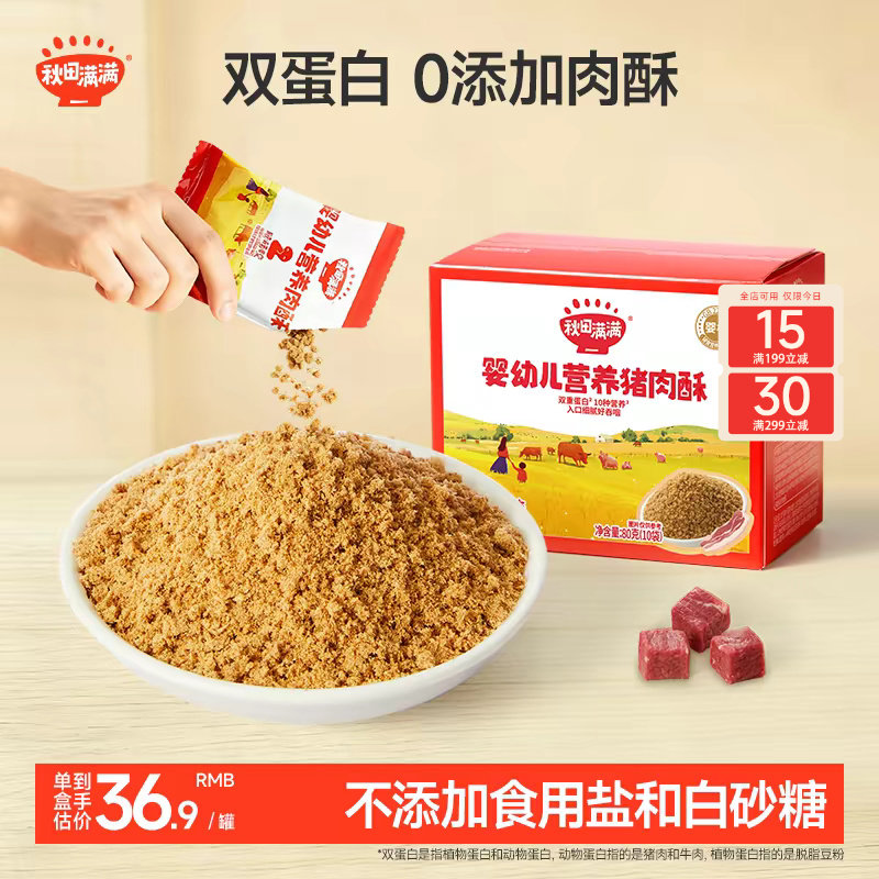 秋田满满婴幼儿宝宝肉松猪肉无调料添加拌饭牛肉酥高蛋白儿童辅食