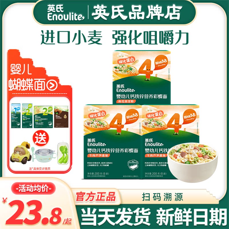 英氏蝴蝶面婴儿蔬菜面无添加盐宝宝面条一岁英式蝴蝶面儿童辅食面