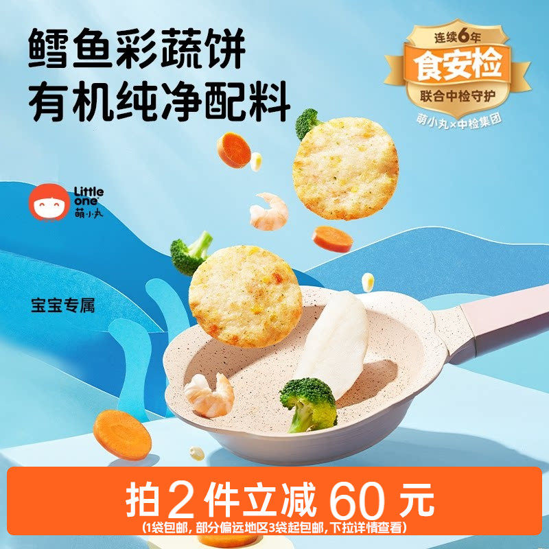 萌小丸大西洋真鳕鱼新鲜冷冻鳕鱼彩蔬饼宝宝婴儿童辅食食材240g