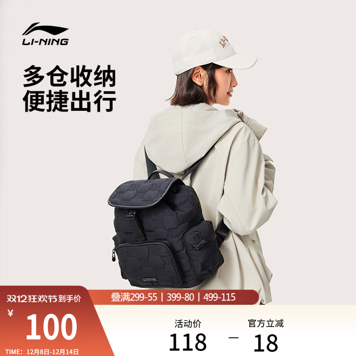 李宁双肩包女官方旗舰正品户外出行休闲百搭背包学生书包运动包包