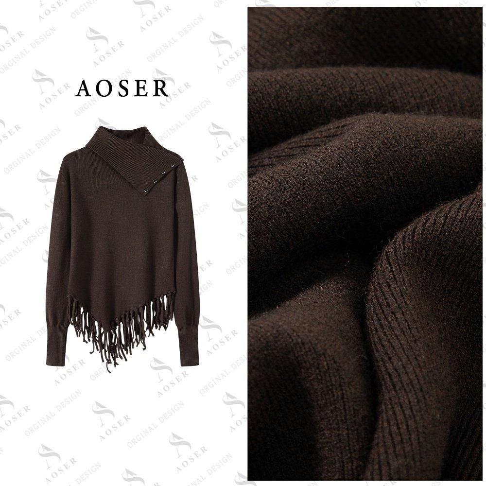 AOSER时尚百搭潮流宽松休闲风立领套头厚款针织衫女装95177