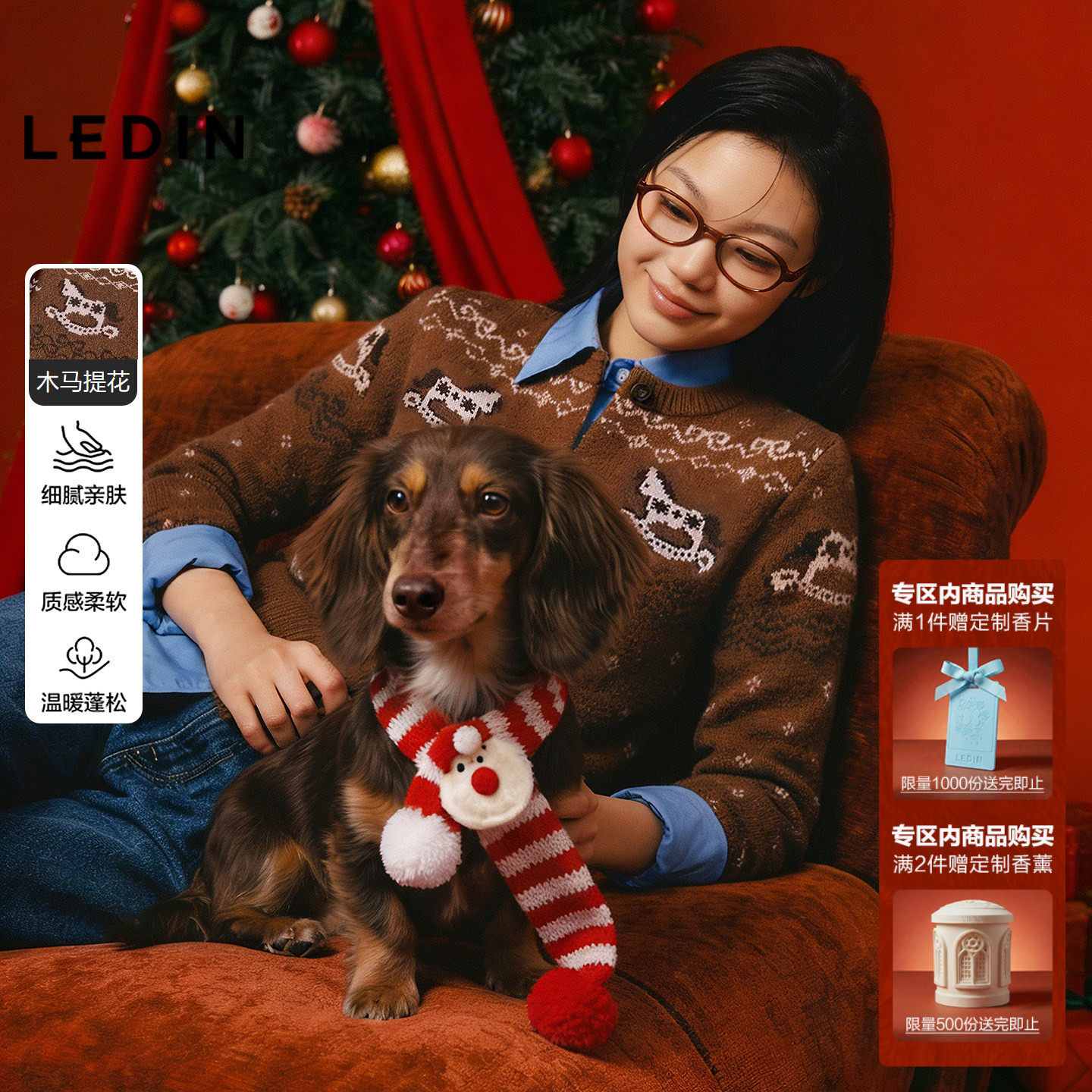 【致臻系列】HM女装毛针织衫新款红色保暖静奢风针织衫1242877