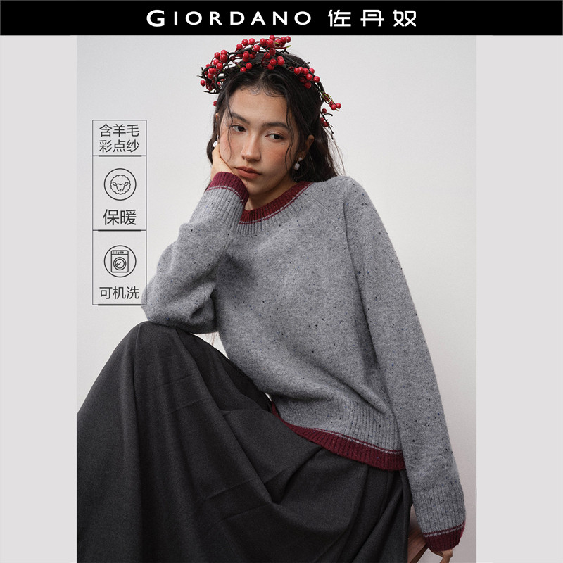 设计师款佐丹奴针织衫女装新款撞色圆领插肩宽松混色毛衣18355828