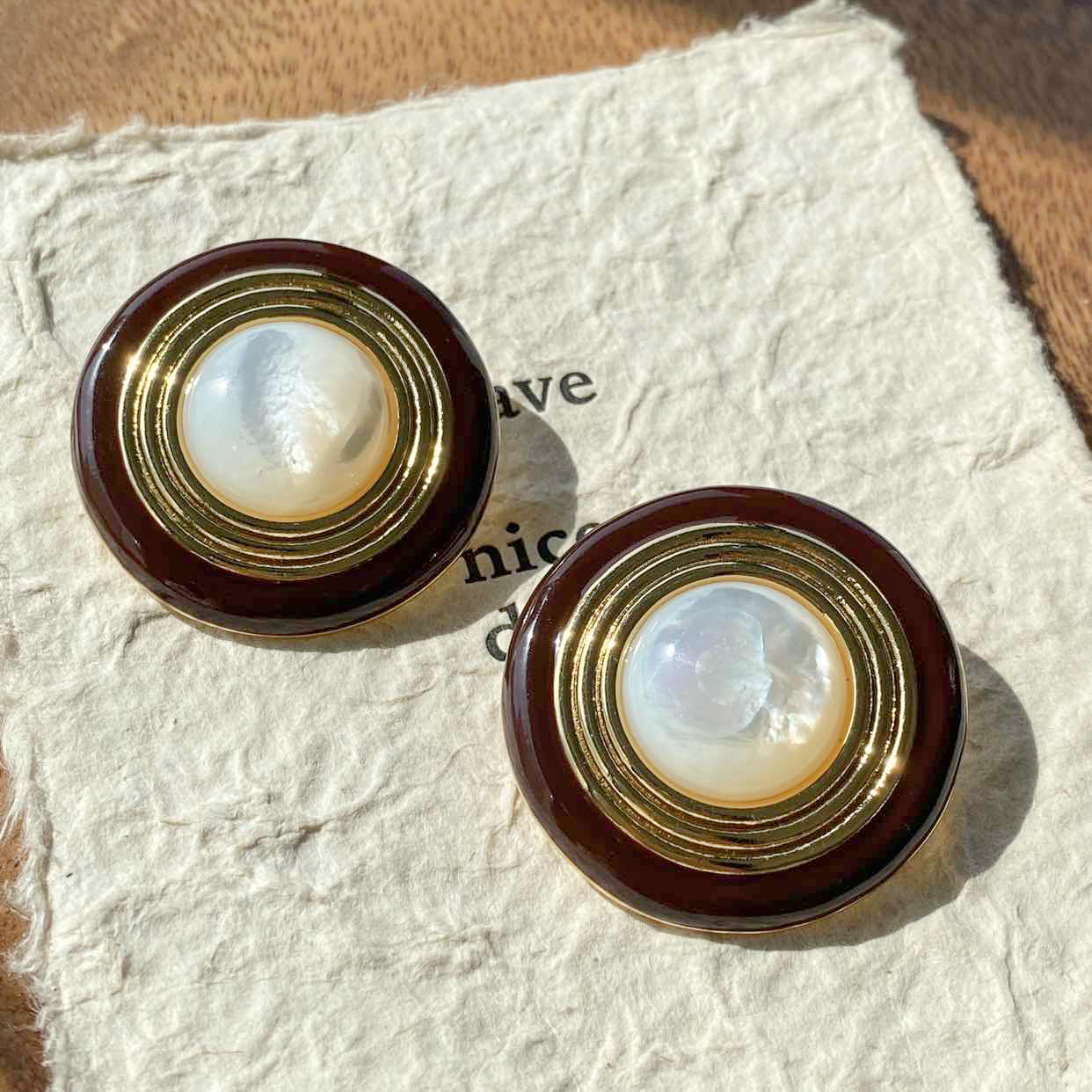 morges现代自制Vintage风复古董首饰珐琅镀金珍珠耳环耳夹耳钉