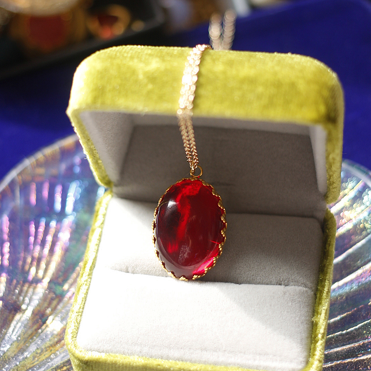 波尔多红|稀有古董高贵鸽血红老琉璃项链吊坠中古董首饰品礼物女
