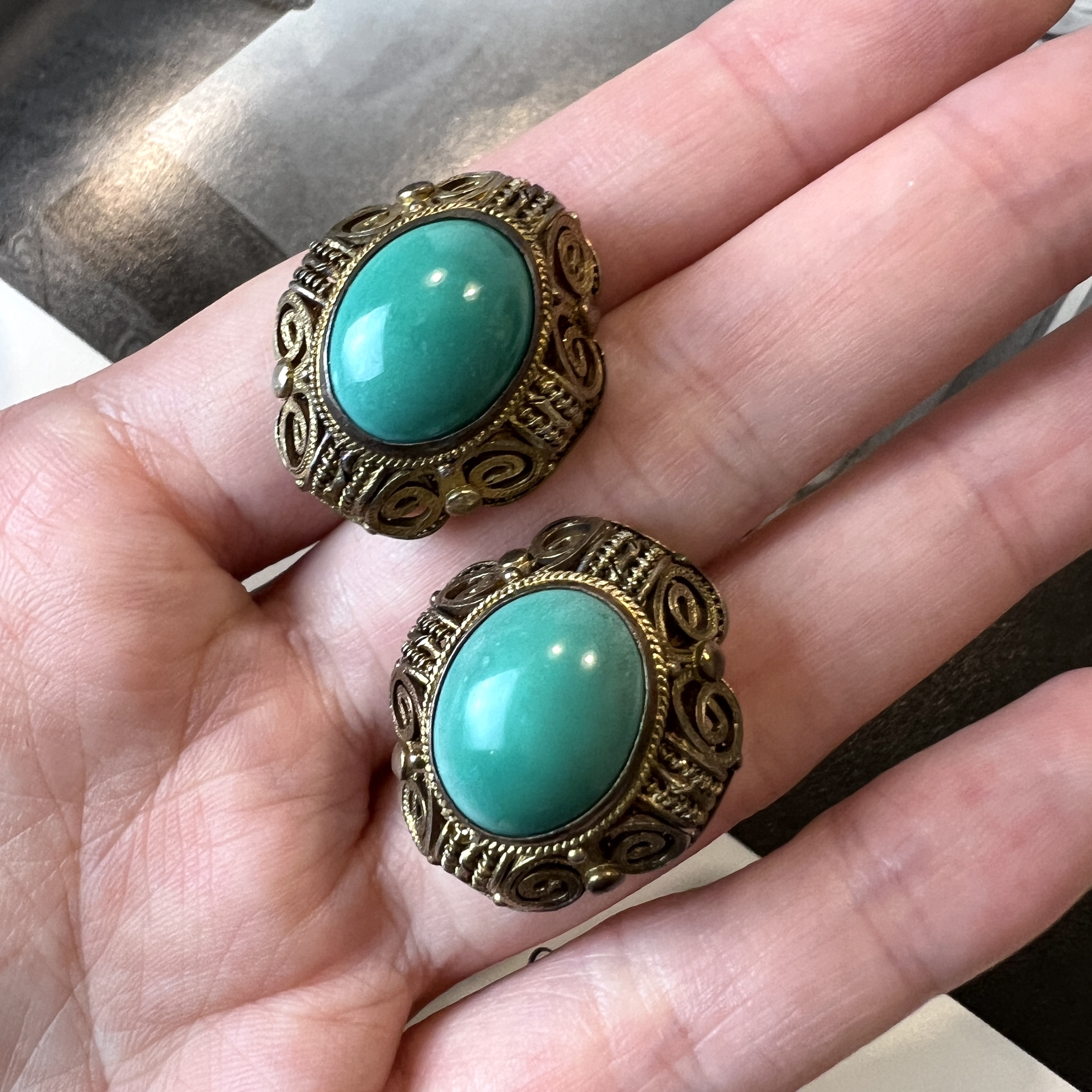 天然美松耳环925纯银耳环欧美手工银饰古董首饰中古绿松石耳环