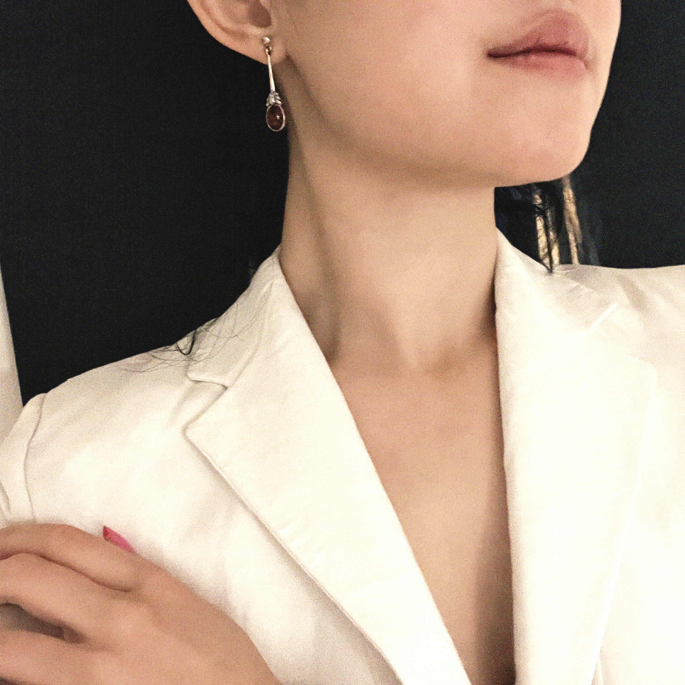 天然原矿琥珀耳环925纯银耳环欧美手工银饰vintage古董首饰耳钉