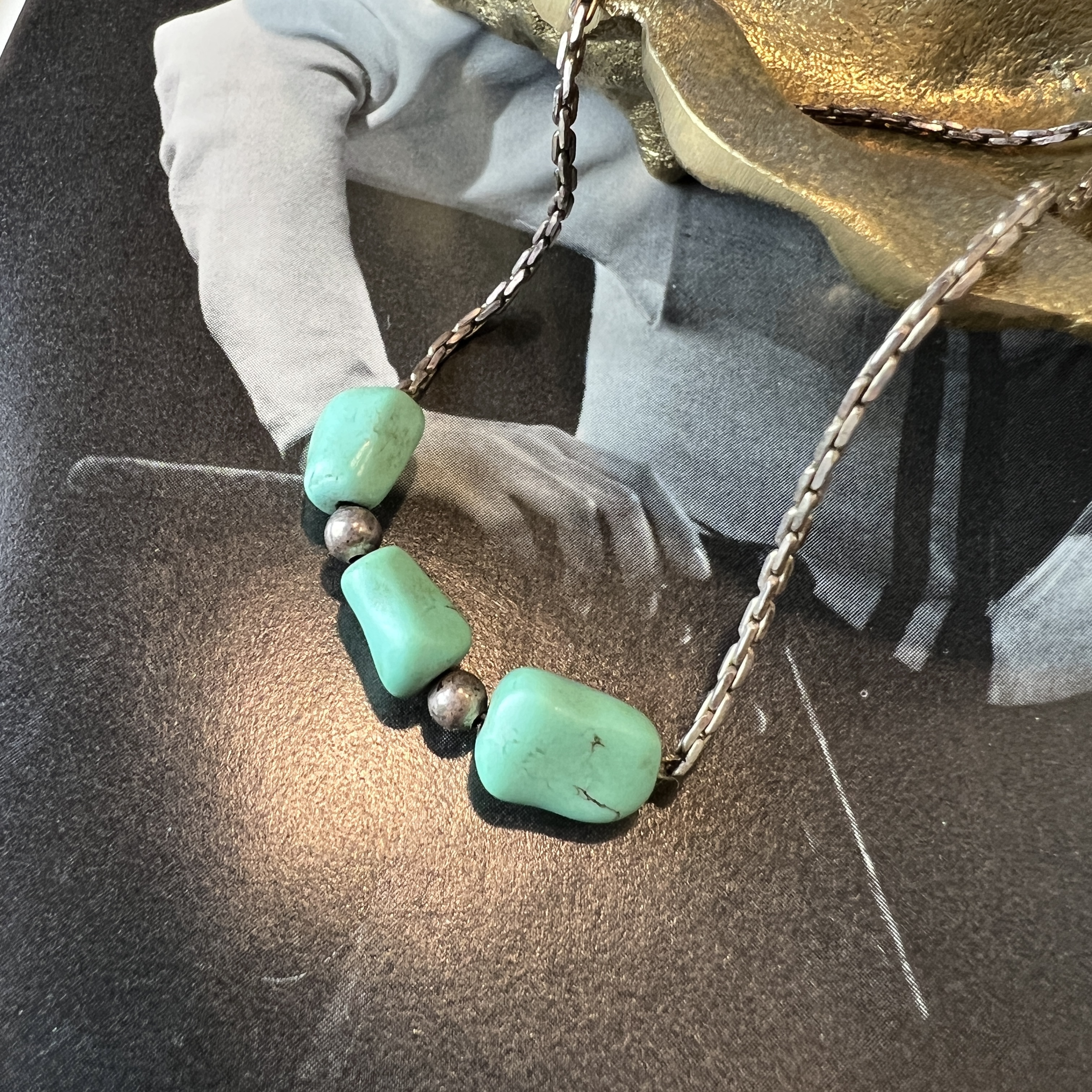 天然原矿绿松石项链石榴籽随形绿松石项链925纯银欧美古董首饰
