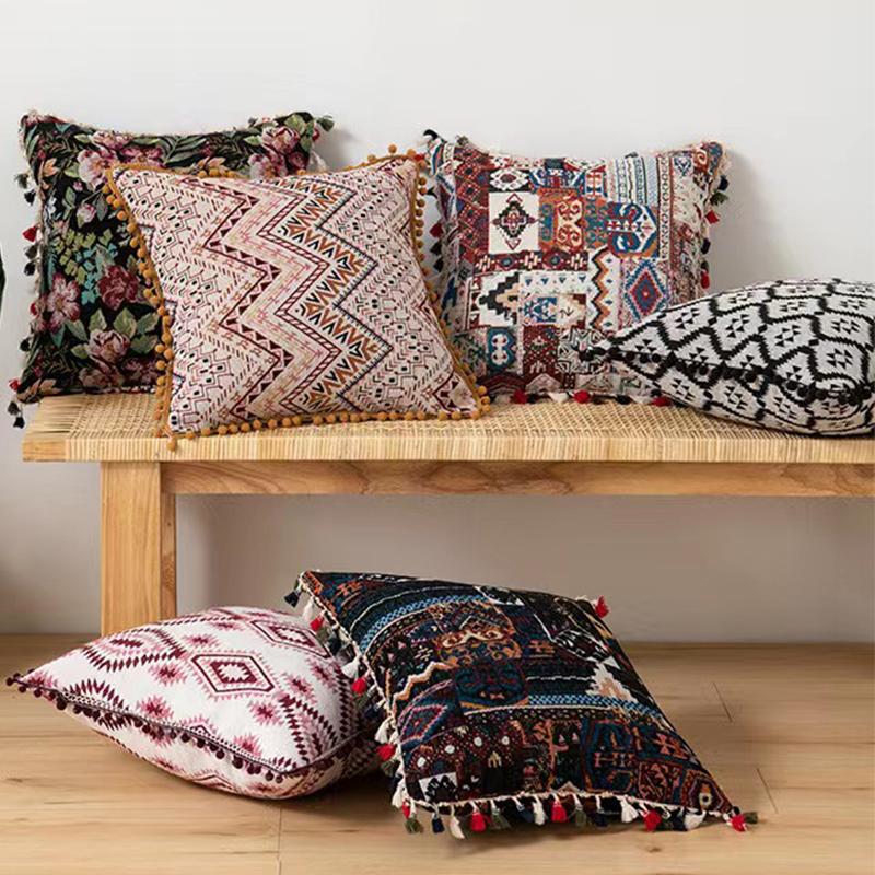 3EW1复古民族亚麻流苏编织摩洛哥波西米亚纯棉抱枕套靠垫车沙发床