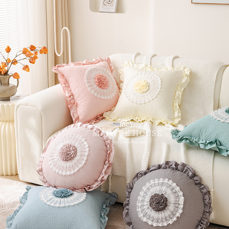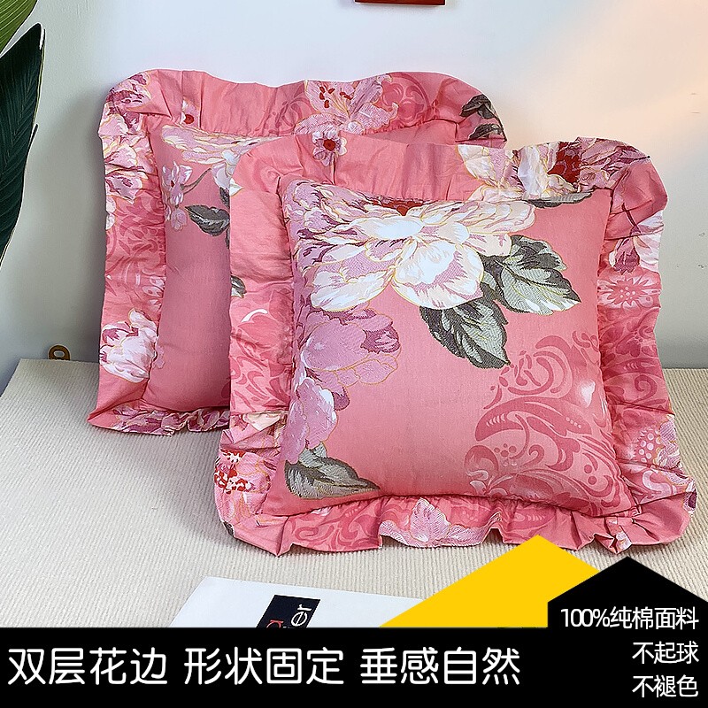 蕾丝荷叶边装饰ins风纯棉抱枕套靠枕公主风韩式花边大靠垫正方形