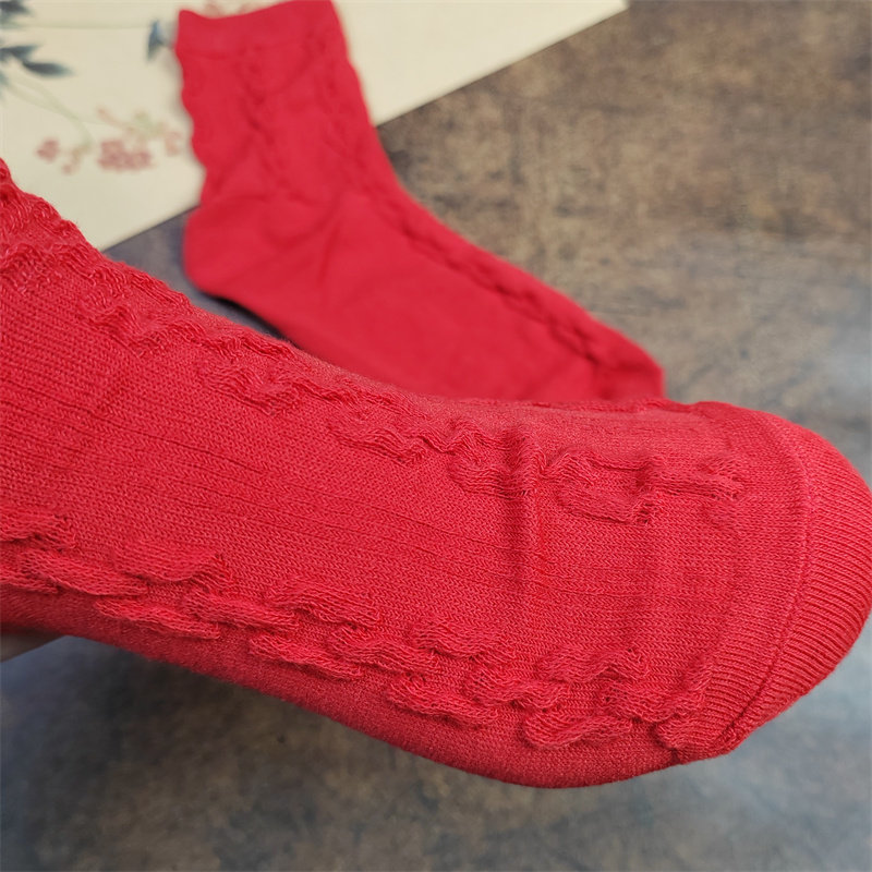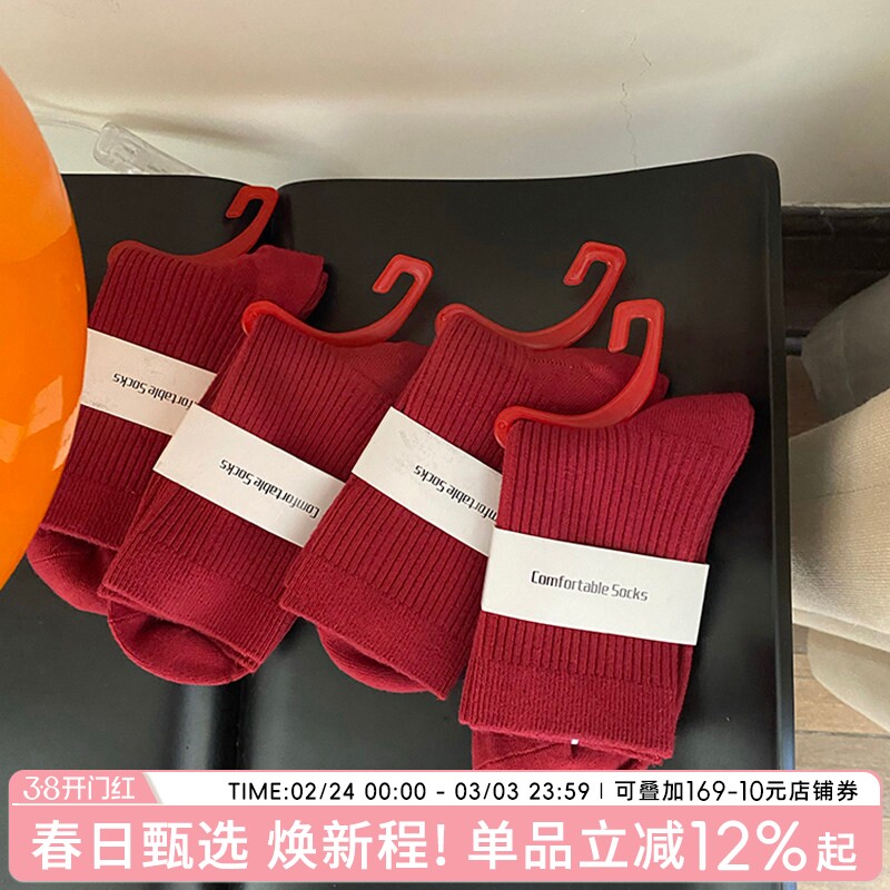 袜子女新款本命年红色女袜纯棉中筒袜透气女士秋冬保暖堆堆袜结婚