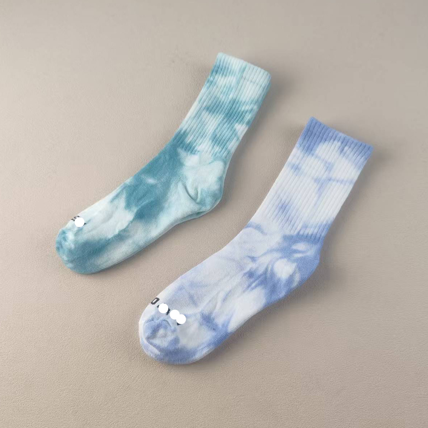 库存尾货小码扎染女袜纯棉中筒袜男女通用蓝白渐变棉质吸汗运动袜