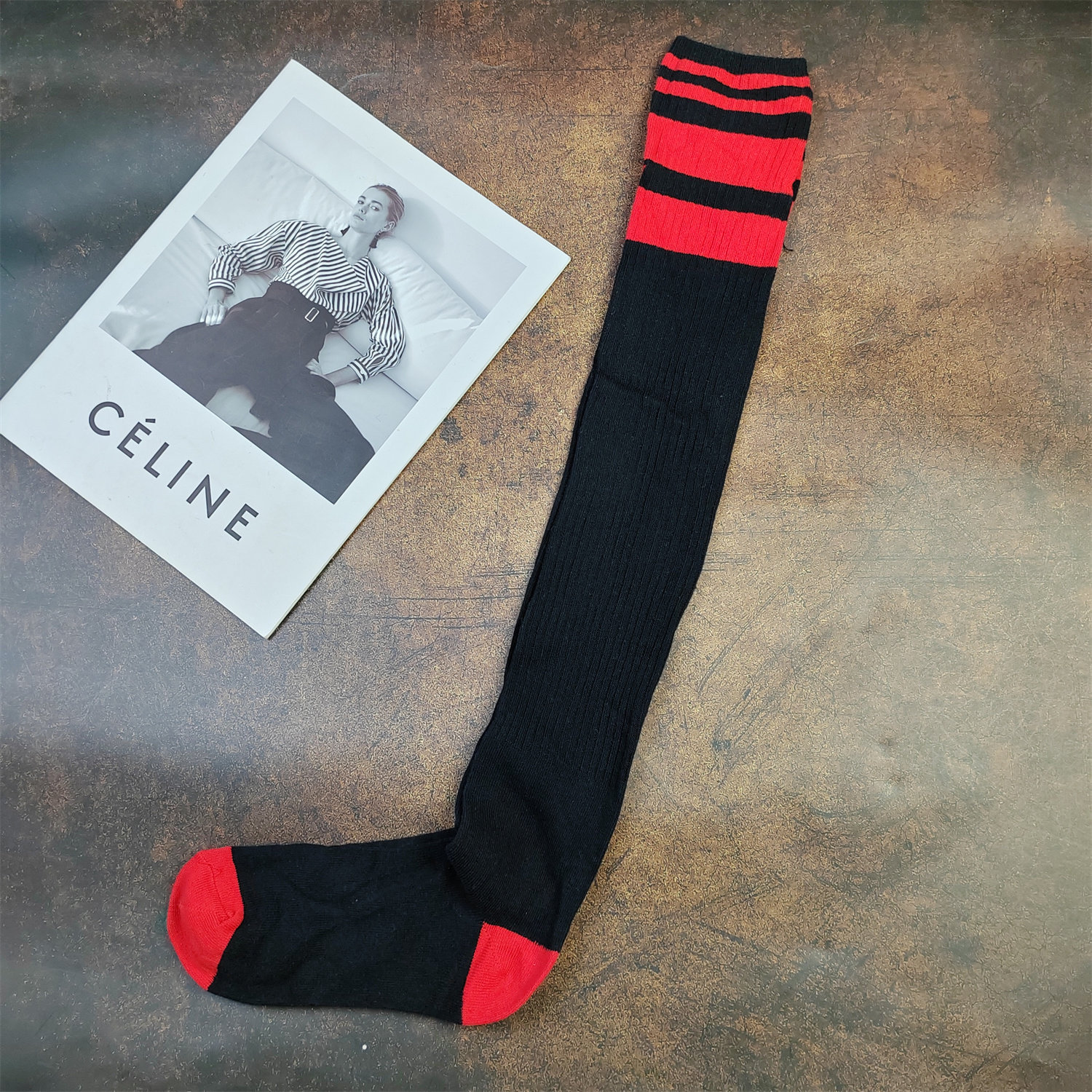 外单 长56cm撞色条纹中高筒女袜纯棉过膝护腿袜柔软舒适大腿袜女