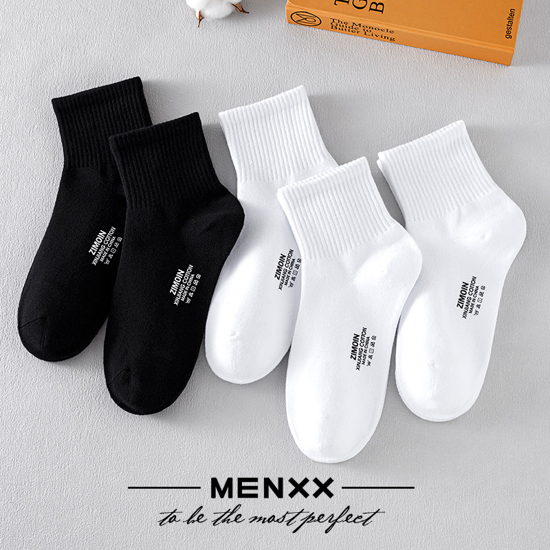 MENXX黑白袜子男士中筒袜秋冬纯色防臭吸汗百搭女袜纯棉学生长袜