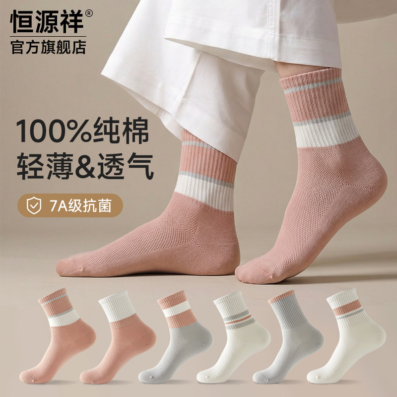 恒源祥春秋款女袜纯棉中筒袜吸汗防臭2026爆款女学生运动抗菌袜子