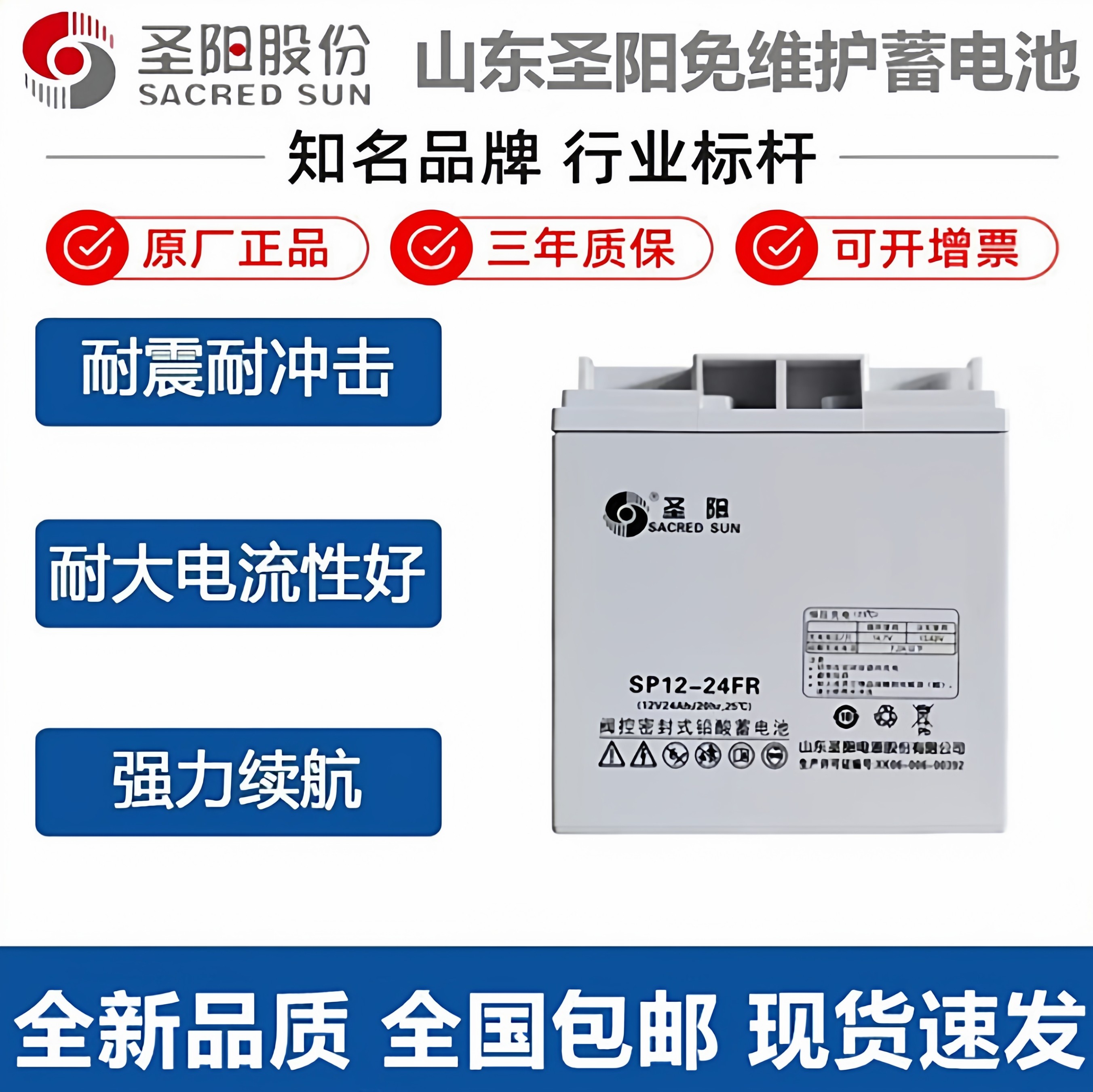 圣阳蓄电池SP12-24FR12V24Ah38AH直流屏UPS/EPS消防主机SP12-38FR