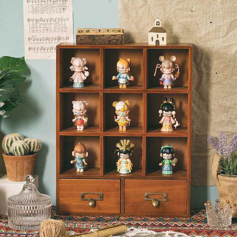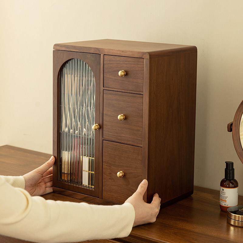桌面实木质化妆品收纳盒复古简约储物小柜M子整理盒抽屉柜置物架