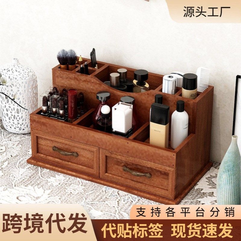 木质化妆品收纳盒桌面防尘大容量抽屉式梳妆护肤品置物架生日礼物