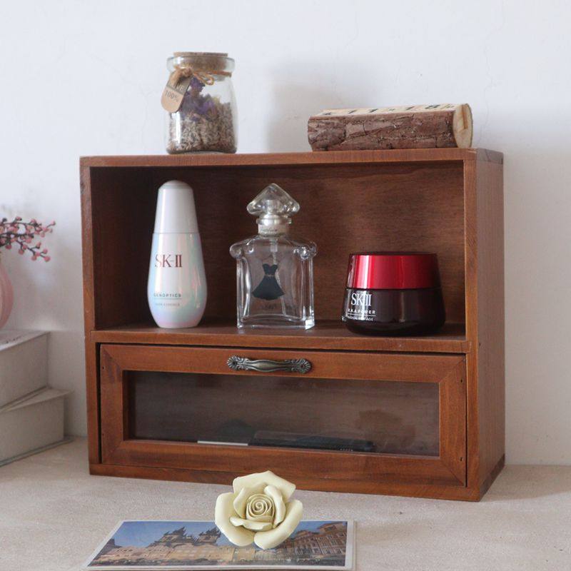 木质复古桌面办公室收纳盒化妆品香水置物架桌上置物柜书桌办公桌