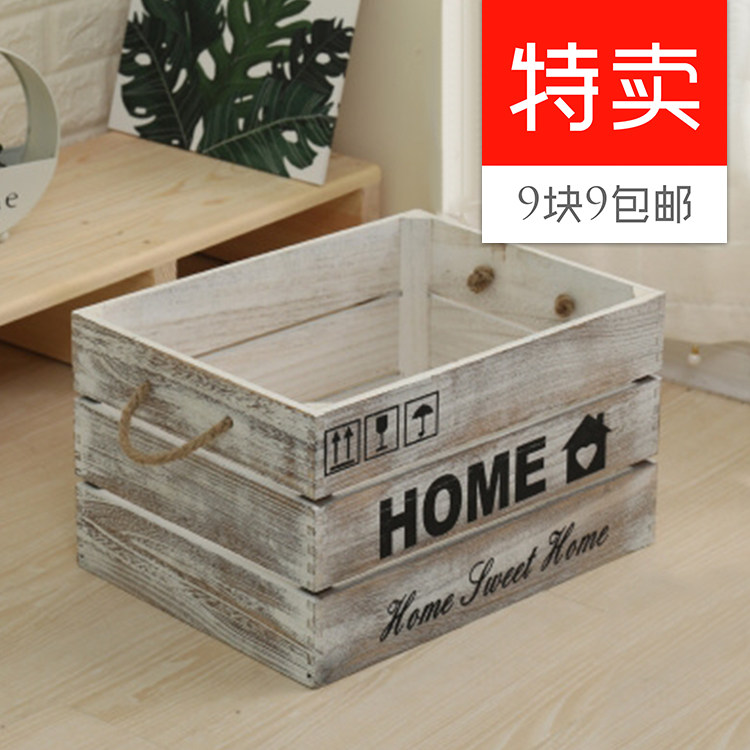 ins风复古木质手提收纳盒长方形整理储物盒桌面杂物化妆品置物盒