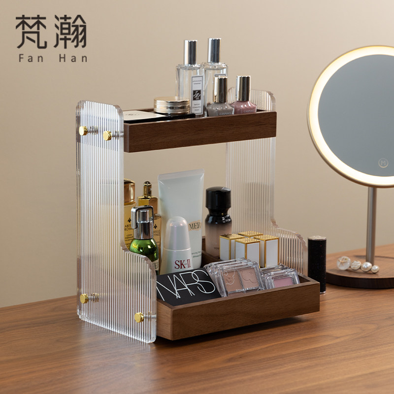 梵瀚木质化妆品收纳盒桌面高级感卫生间洗手台亚克力护肤品收纳盒