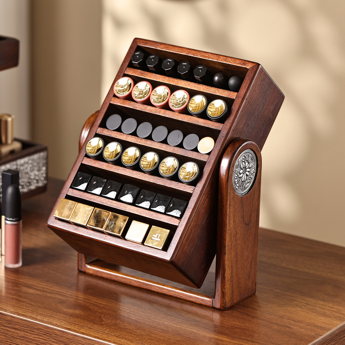 异丽高档木质化妆品收纳盒桌面旋转多层大容量口红香水多层收纳架