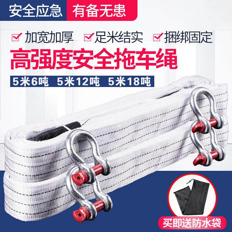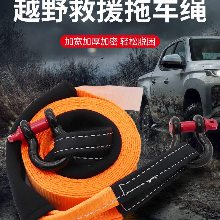 车载拖车绳加厚汽车牵引绳拖车带强力霸道拖车绳5吨8吨拖车带救援