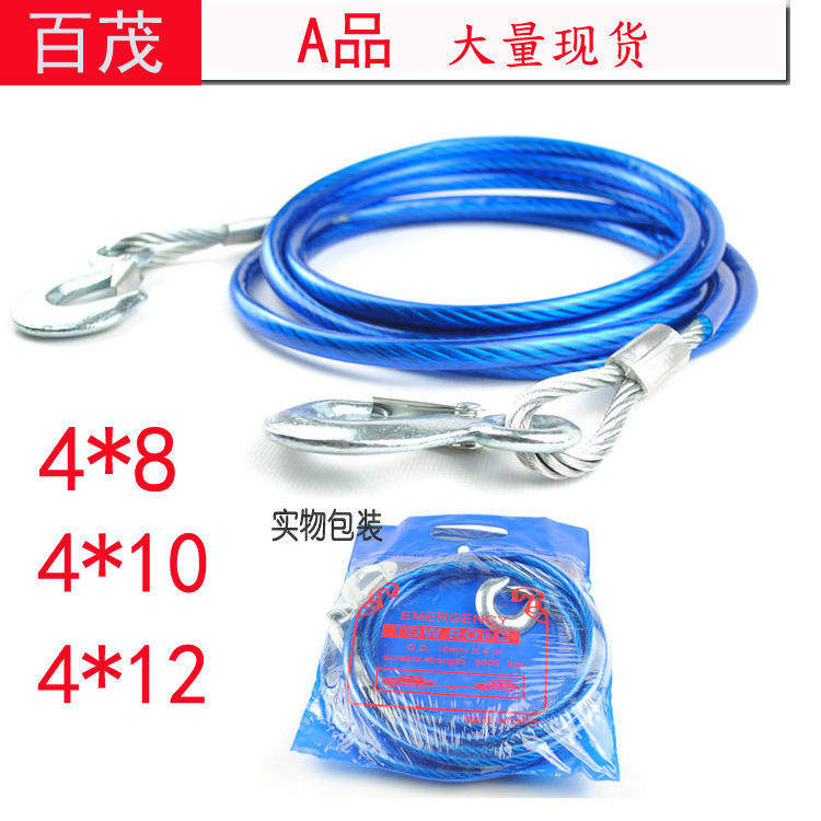 汽车牵引绳 车用钢丝绳 加粗拖车绳 拉车带 5吨4米 鹰嘴钩 PP包装