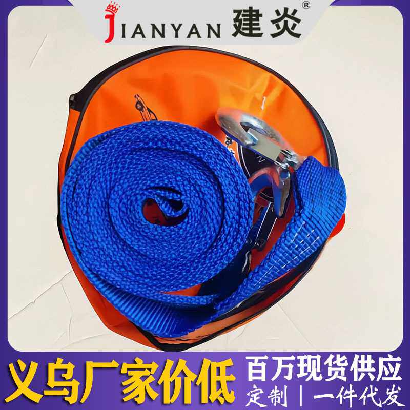厂家现货高强度拖车绳汽车牵引绳套装收纳箱卸扣拖车带可自定颜色
