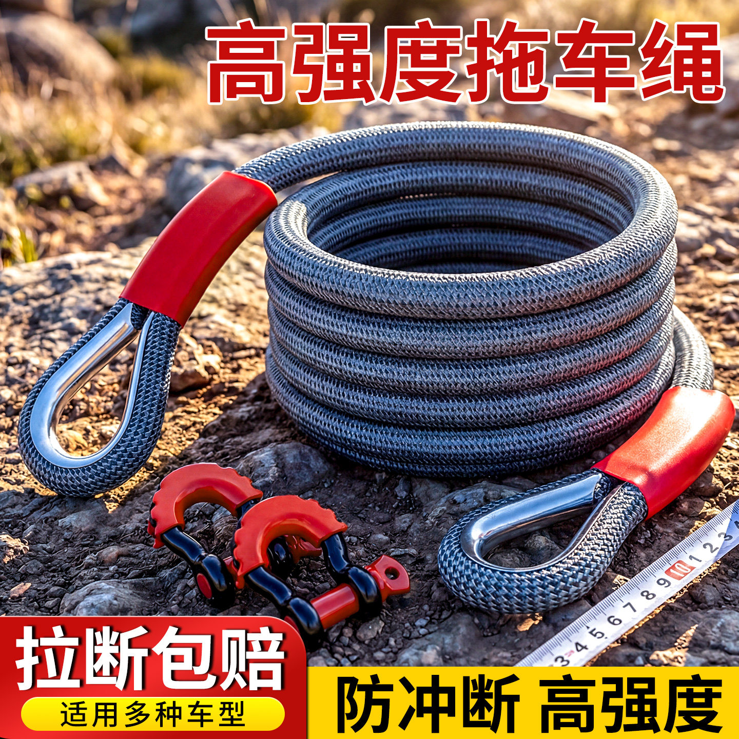 车载高强度牵引绳,强力越野救援拖车用汽车牵引绳,应急牵引绳,