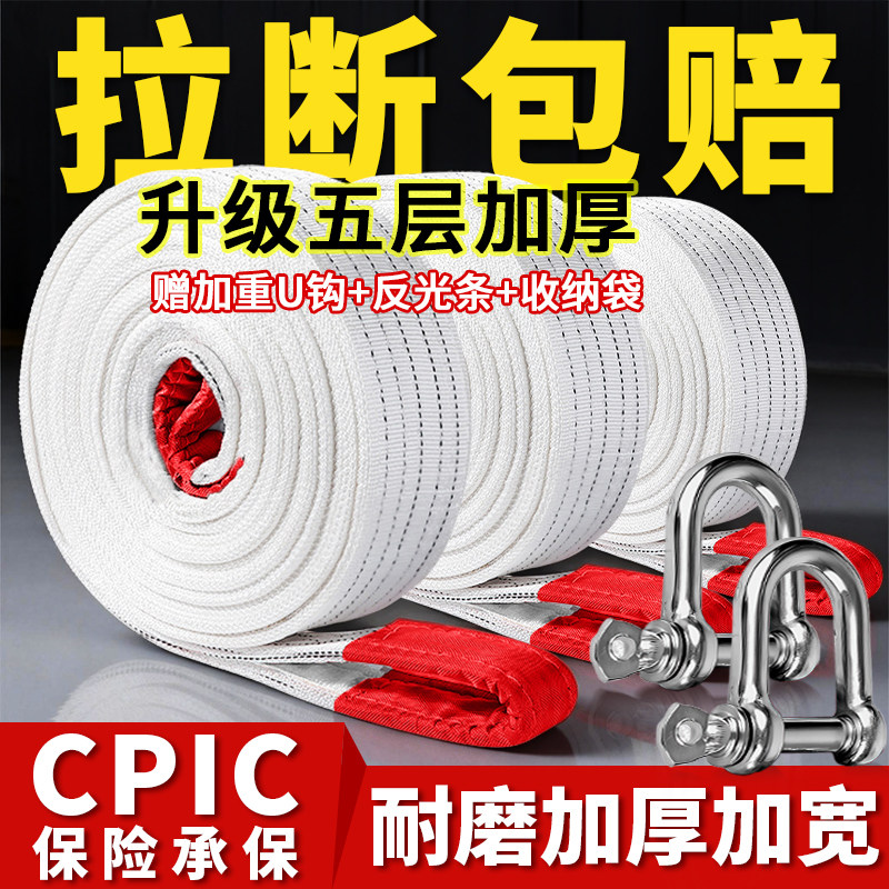 汽车拖车绳强力重型5吨10吨拉车绳牵引绳越野车SUV专用拖车带反光
