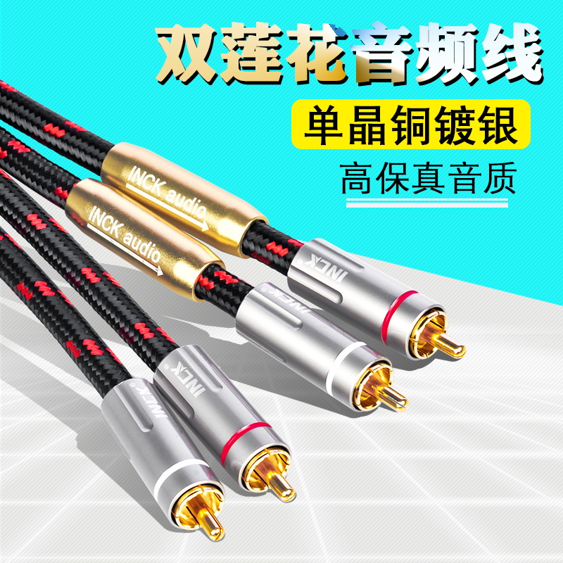 银珂4芯单晶铜镀银发烧级双莲花音频线CD功放HIFI红白RCA信号线